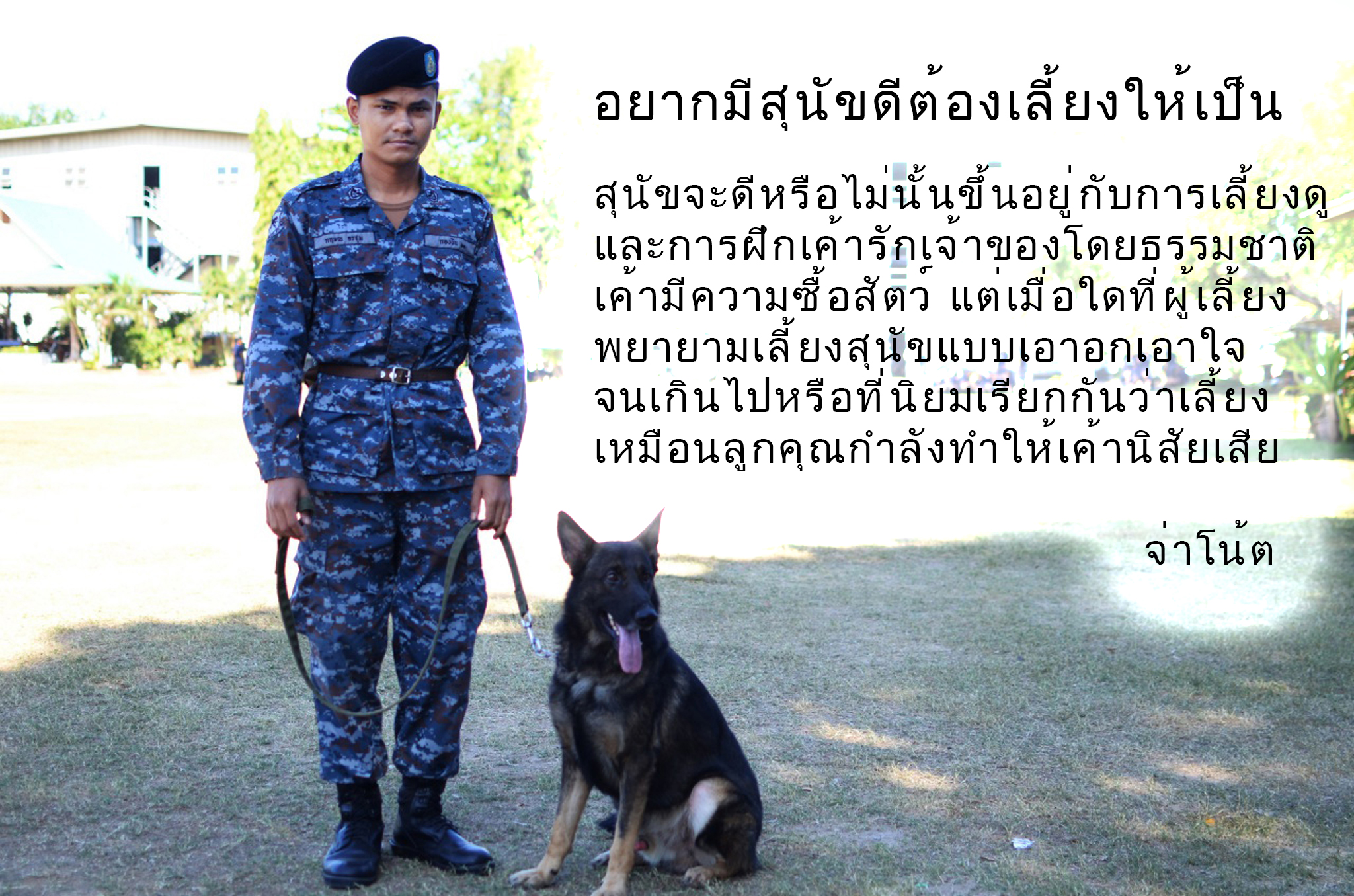 - เราจะพูดในสิ่งที่เป็นไปได้ไม่ขายฝัน สิ่งไหนทำได้ก็บอกว่าได้ สิ่งไหนทำไม่ได้ก็บอกว่าไม่ได้ ฝึกสุนัขก็ไม่ต่างจากคนบางคนฝึกง่ายบางคนฝึกยากบางคนก็ไม่เหมาะแก่การฝึกบางประเภท